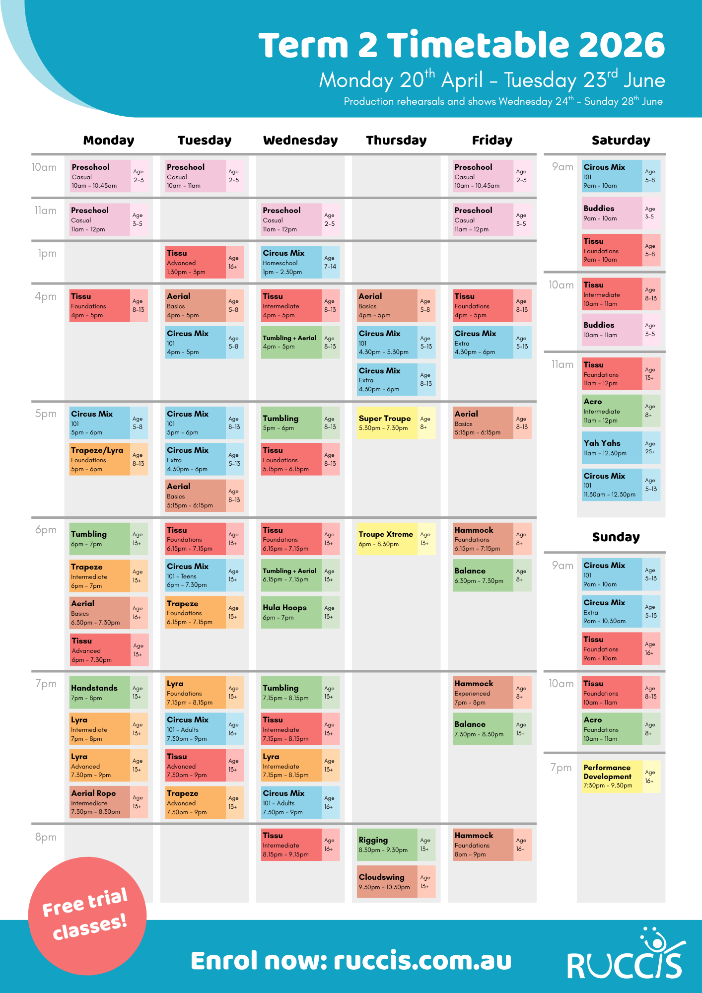 Please note: Ruccis does not provide refunds or credits for missed classes or if you change your mind after starting your enrolment..